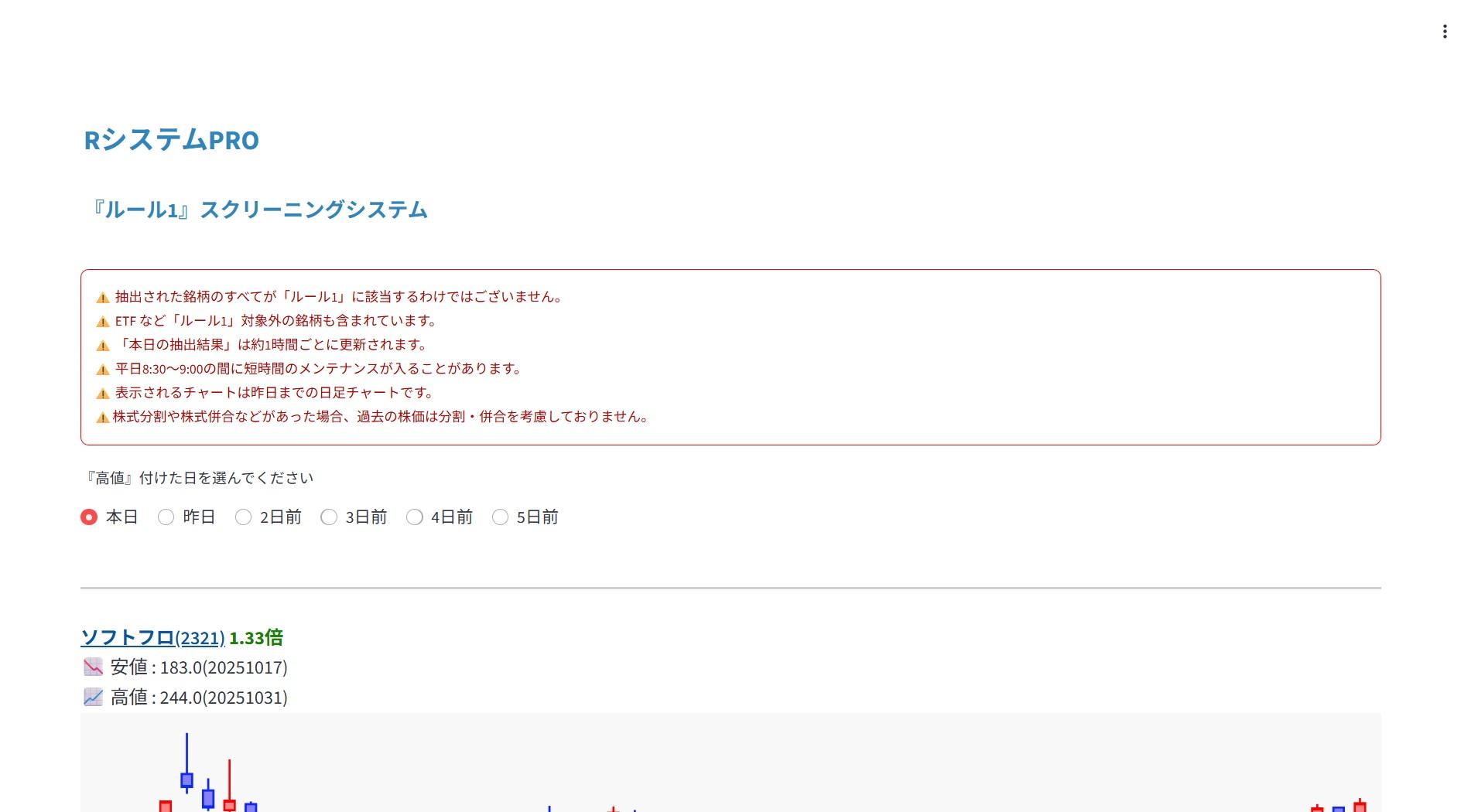 RシステムPROは、特定の銘柄を推奨するものではなく、 相場を「学び・振り返る」ための学習支援ツールです。
